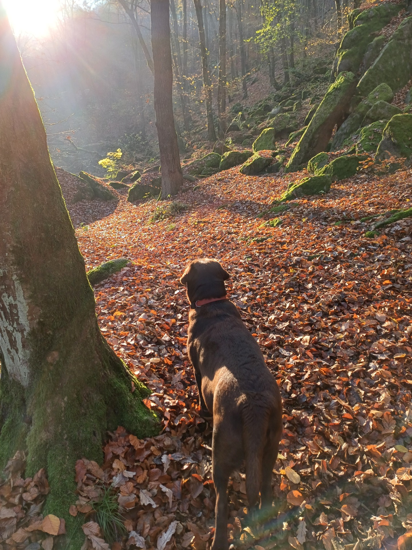 Po černém otci a hnědé matce. Oba rodiče lovecky vedeni. Nos 4. Předpoklad výstavního exteriéru, otec český šampion, matka 3 x výborná a dobrého genetického základu (plnochrupost, DKK A, DLK 0/0).